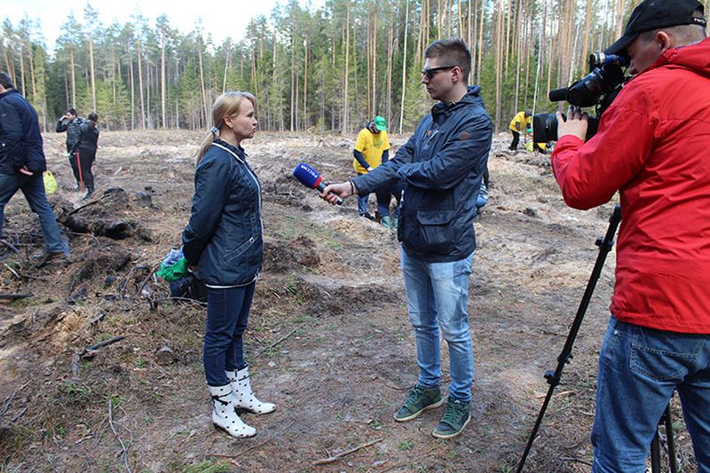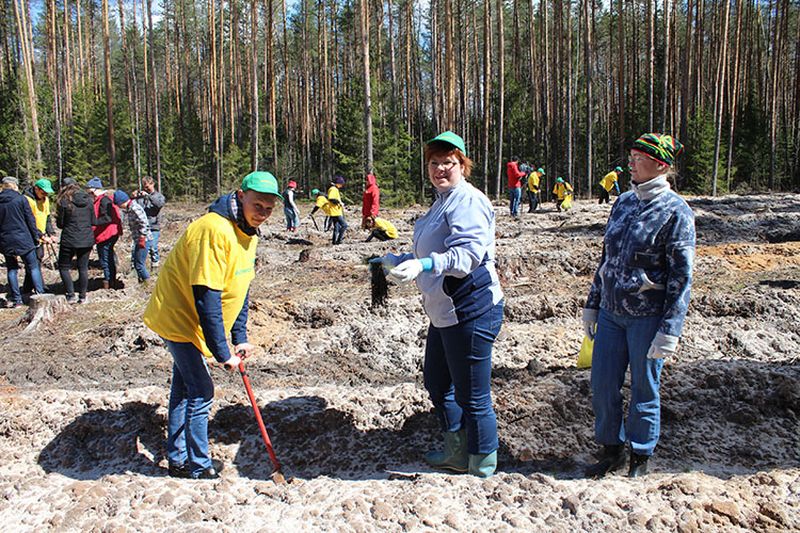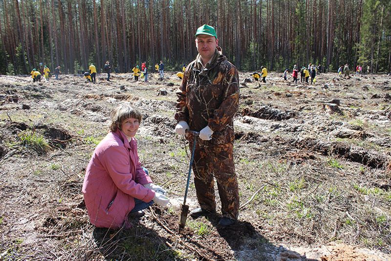 Уже на территории высадки был произведен технический инструктаж по посадке сеянцев. После получения посадочного материала и инвентаря участники акции приступили к работе.